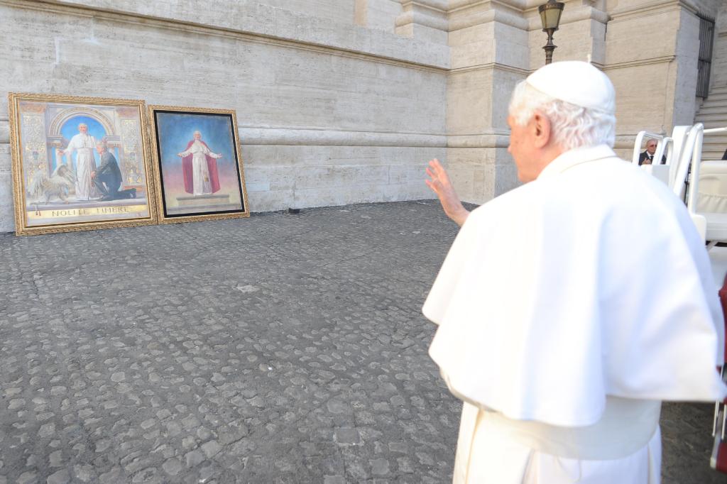Pope Benedict XVI blessing Tomasz Rut’s paintings as they entered the Vatican Collection